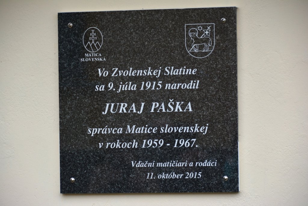 V nedeľu, 11. októbra sme si pripomenuli osobnosť Matičných dejín – rodáka Juraja Pašku, ktorý bol správcom Matice slovenskej v rokoch 1959 – 1967. Pri príležitosti jeho nedožitých stých narodenín mu bola na budove kultúrneho domu odhalená pamätná tabuľa, ktorá nám bude jeho život a dielo pripomínať.